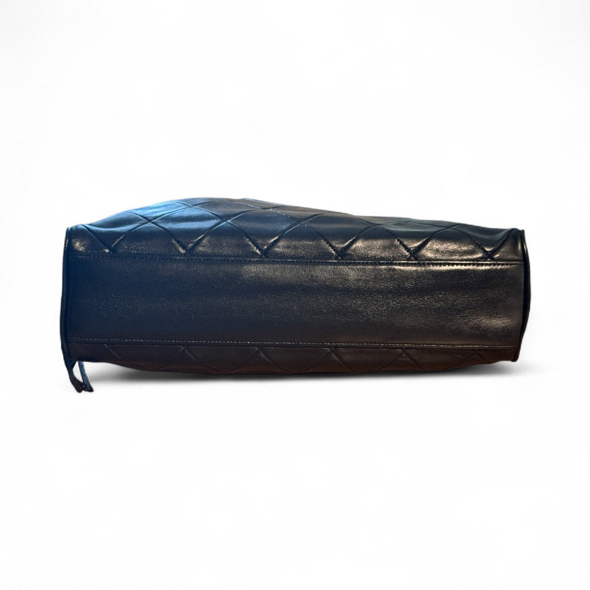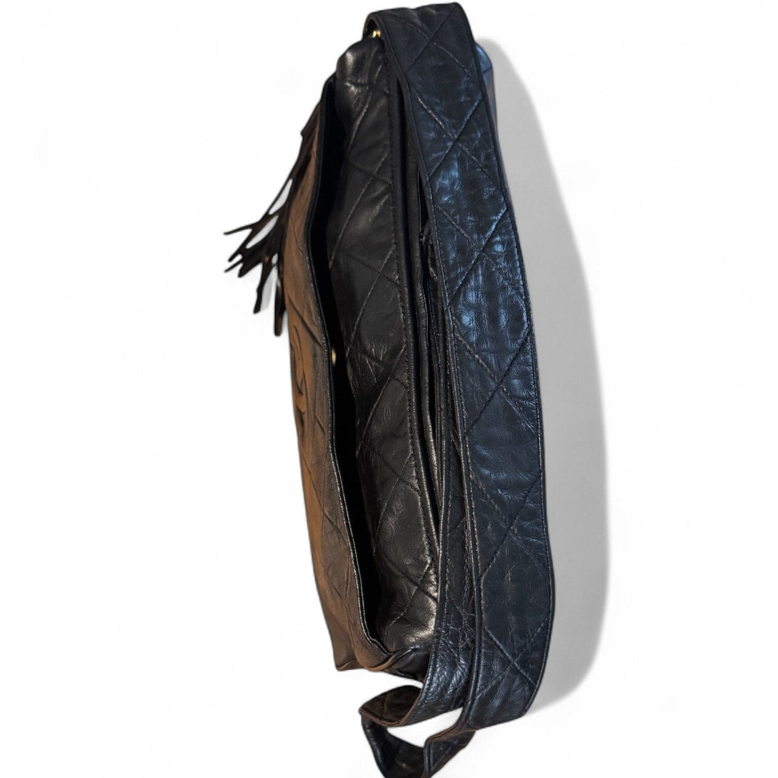A rare piece of 1980s Chanel history. This oversized diamond-quilted lambskin camera bag features the iconic CC motif stitched into...