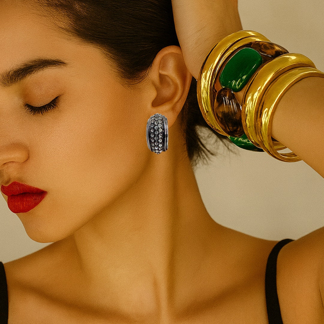A striking dose of '90s-era glamour, these vintage Yves Saint Laurent clip-on earrings are a bold yet refined statement. Crafted...